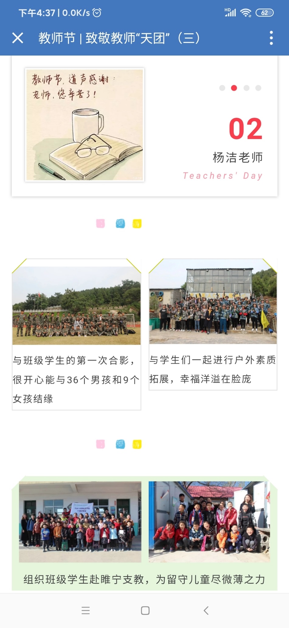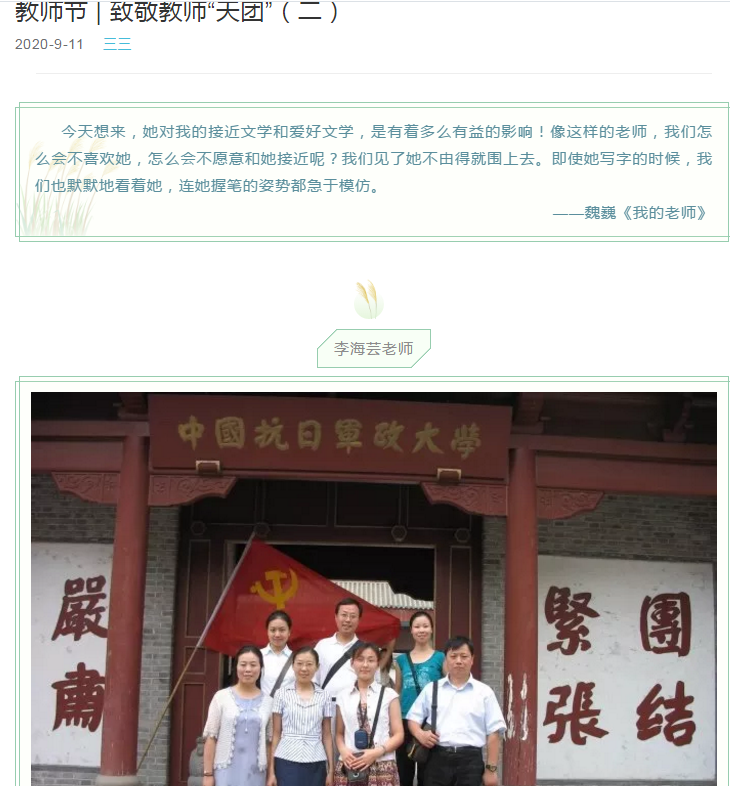 教师节期间,公司微信公众号推出“致敬教师‘天团’”系列推文。老师们深情回顾了自己的从教历程,展示了教育年轮里重要的光影留念,将自己对教育事业的热爱娓娓道来,感人至深,引起了员工们的强烈反响。