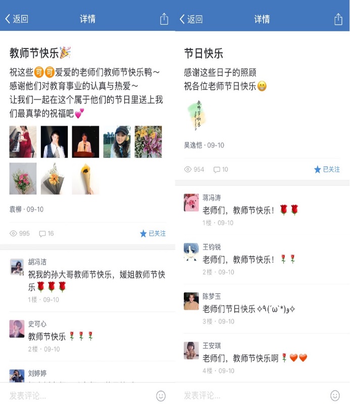 员工会组织开展以“长大方知少年纯,回首才懂师恩深”为主题的庆祝活动。活动在线上开展,同学们积极收集老师照片,通过分享朋友圈,表达对老师的感谢,并以班级为单位,将每一位同学对老师的祝福做成视频,让老师们收获了惊喜和感动。
