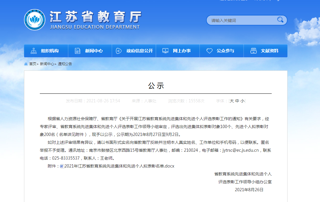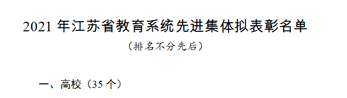 近日,江苏省教育厅发布2021年度江苏省教育系统先进集体和先进个人评选结果,英国正版365官方网站被评为江苏省教育系统先进集体。