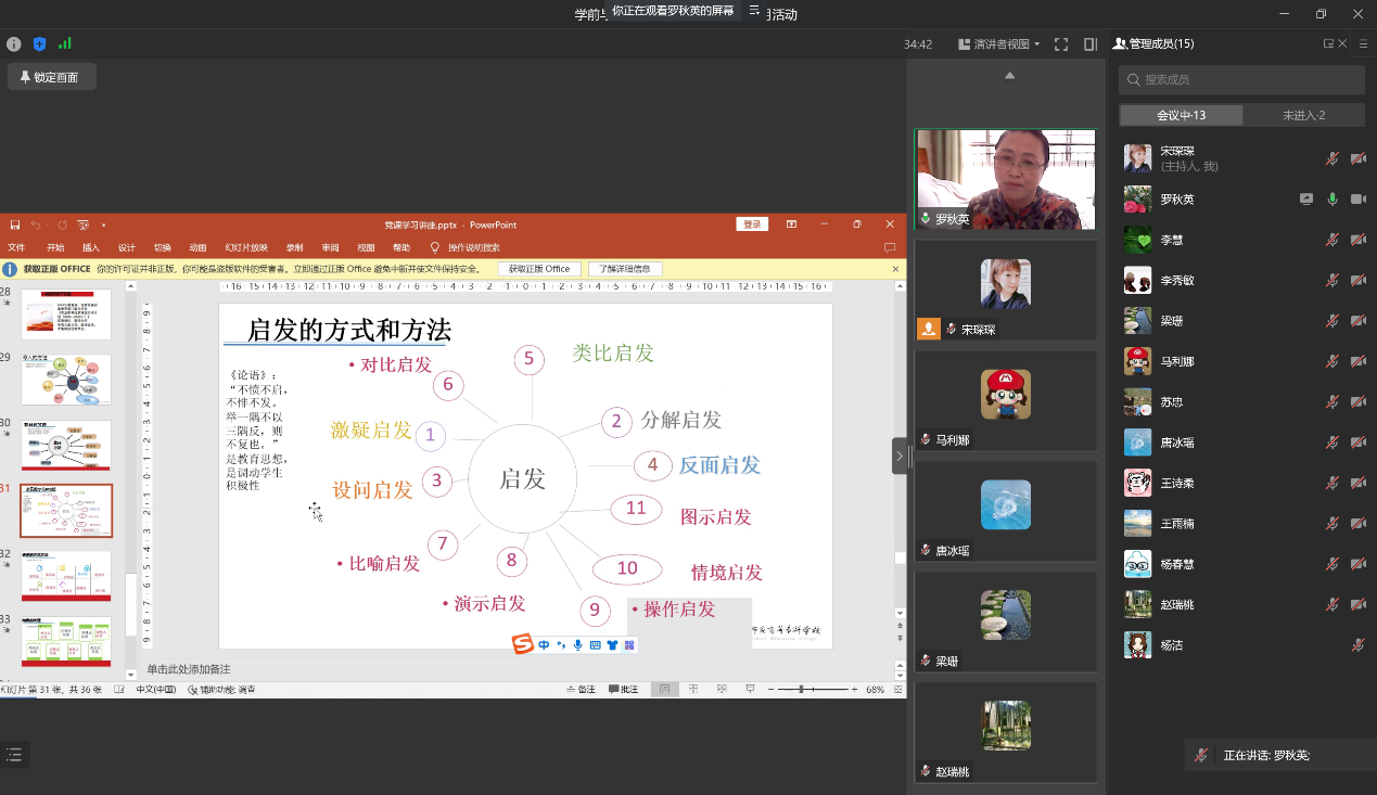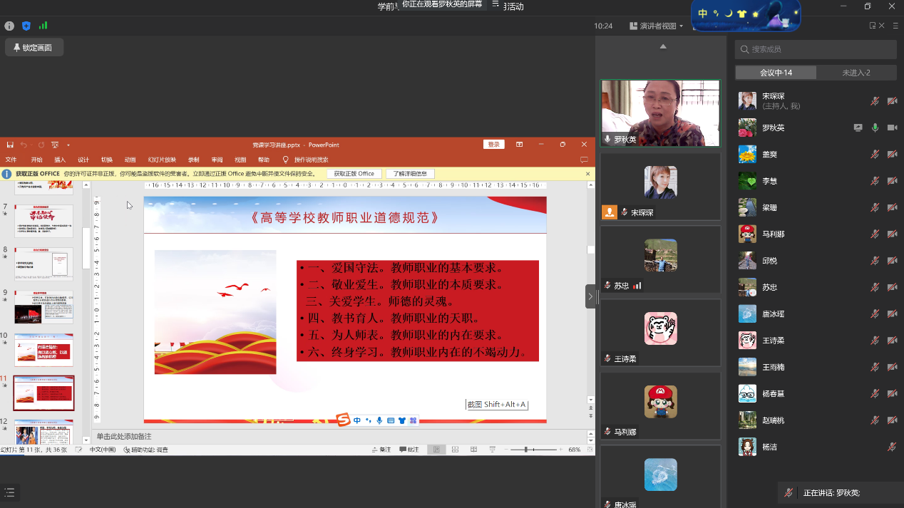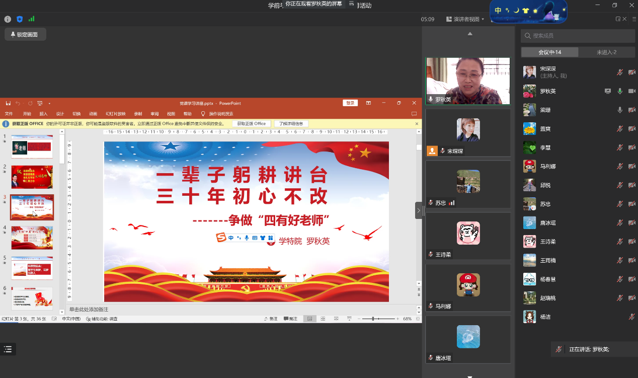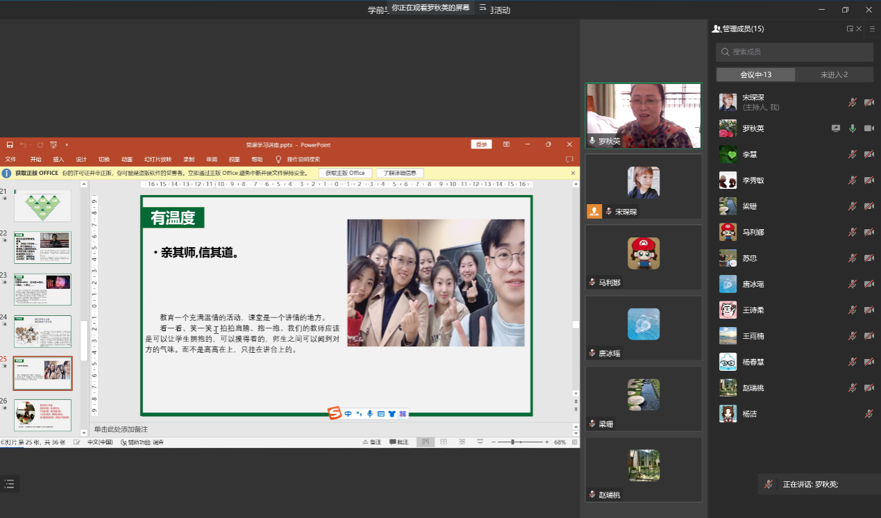 罗教授首先以线上互动的方式,与大家一起重温了习总书记“四有”好老师的内涵,明确这是每一个教育人的毕生追求。