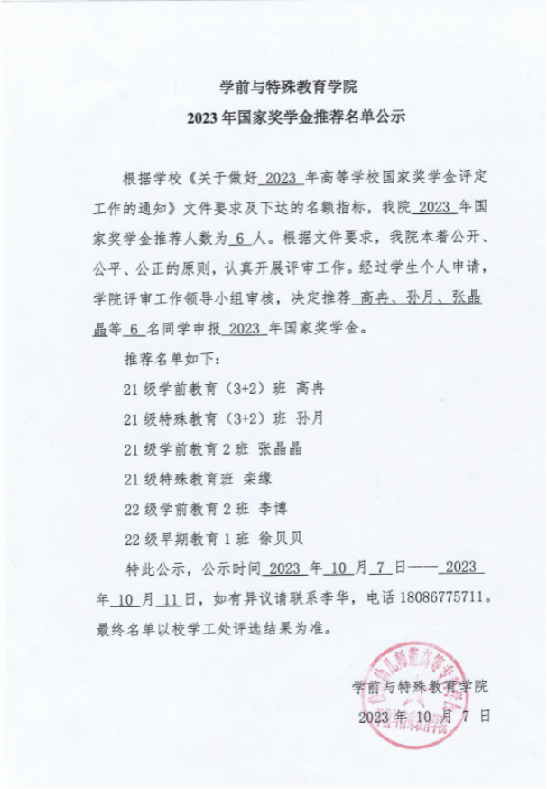 英国正版365官方网站2023年国家奖学金推荐名单公示